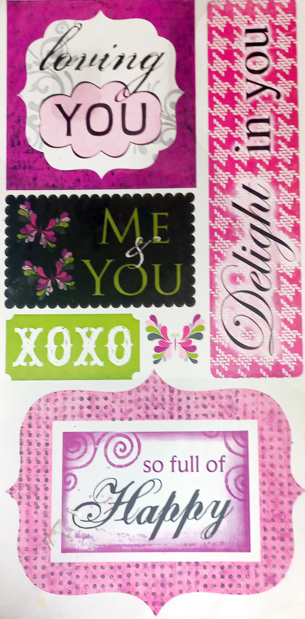 Cartela de adesivos com 8 imagens, tamanho aprox da cartela: 30 cm x 15 cm, ideal para páginas de scrapbook, decoração de álbuns fotográficos, journalbook