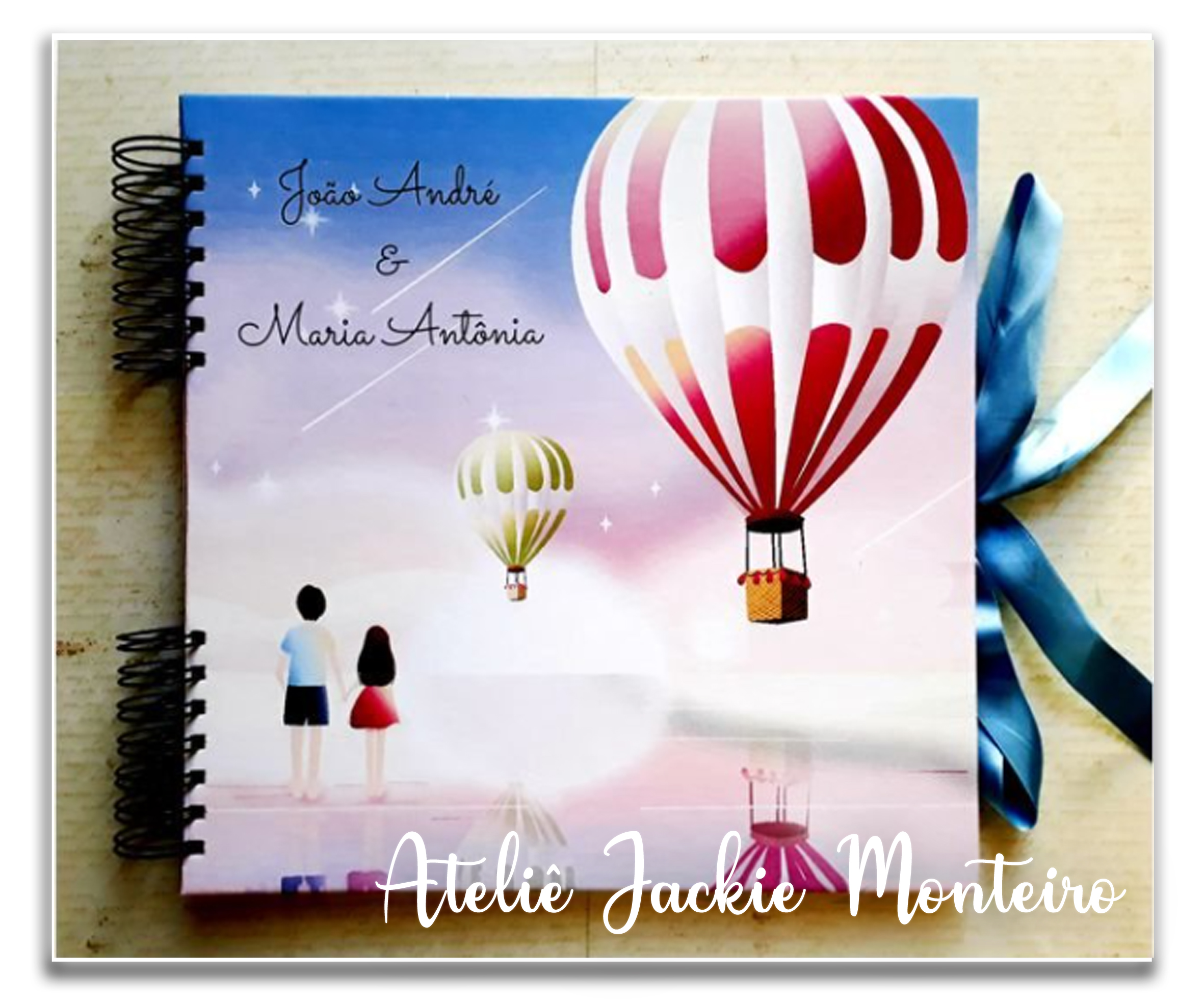 Lindo álbum com balões e cores vivas e alegres, nesta arte pode-se retirar o menino e a menina ou deixar 1 dos 2, também pode-se mudar o nome. Este álbum possui capa e contra capa dura revestida de papel decorado (conforme fotos), com 50 folhas de papel de alta gramatura (cabem 200 fotos), folhas internas de alta gramatura na cor branca