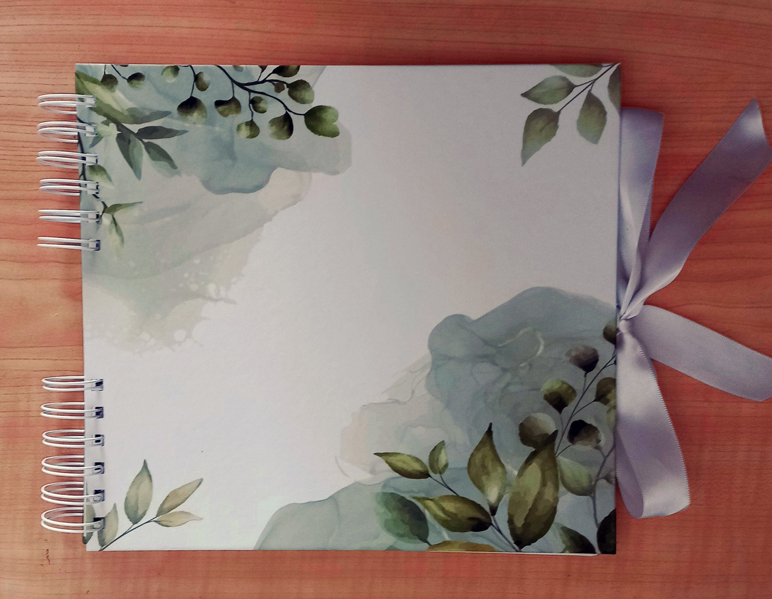 A capa é dura e você pode escolher entre o tamanho M (22x24) com 20 folhas ou o tamanho G (29x30) com 25folhas de alta gramatura
