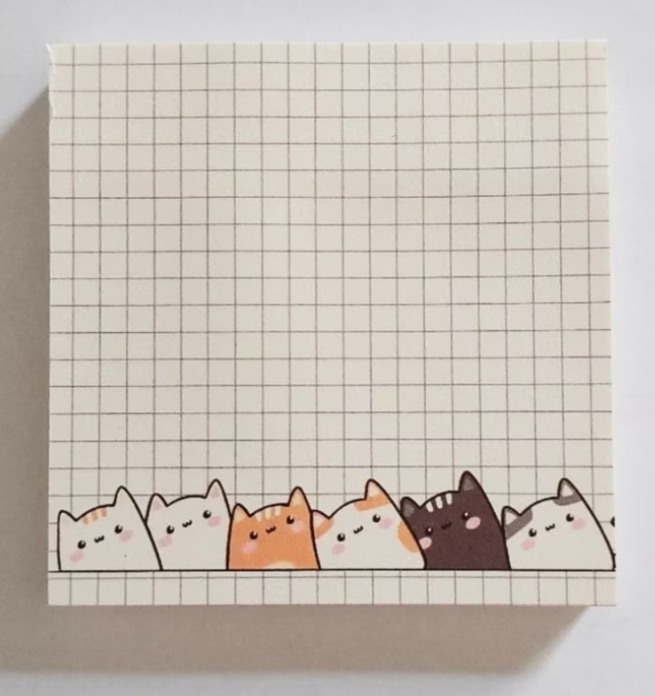 Bloquinho tipo post it com fundo xadrez e desenho de gatinhos