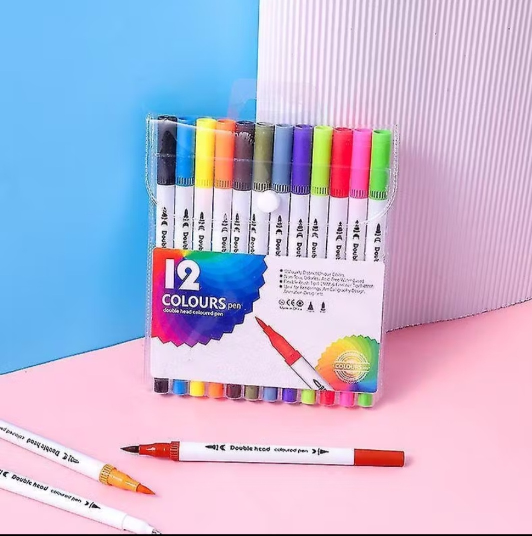 Kit Canetas Brush Pen 2 pontas Dual Tip 24 cores